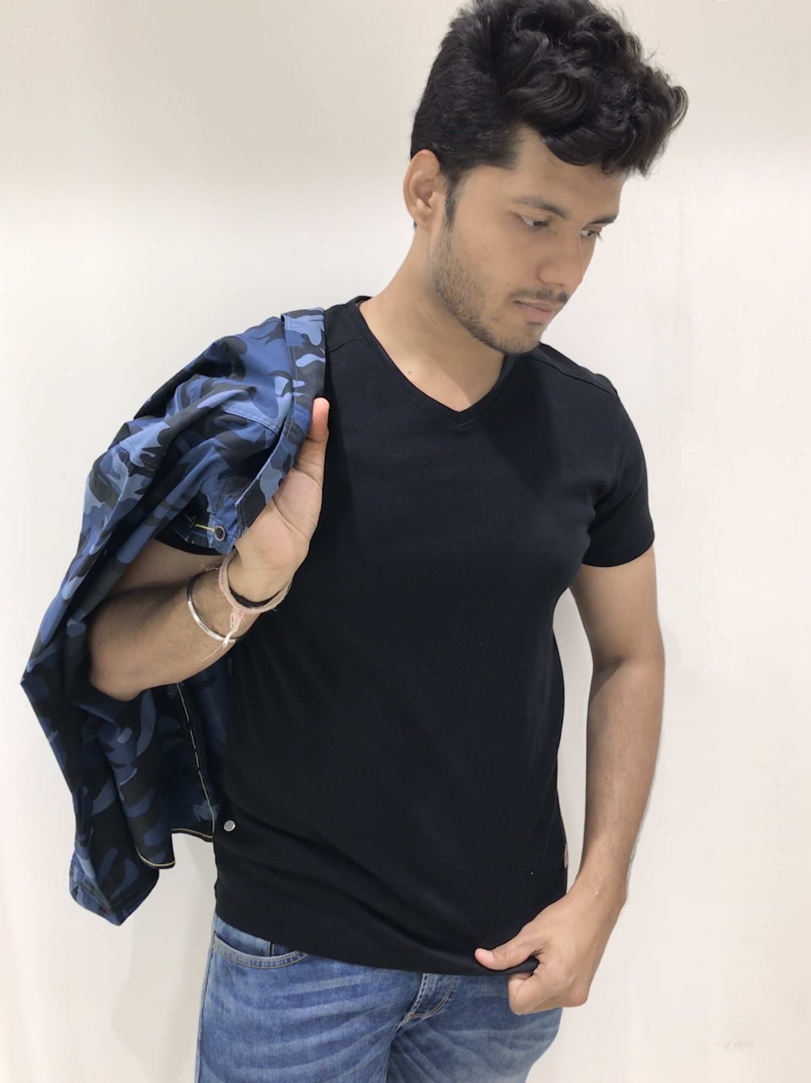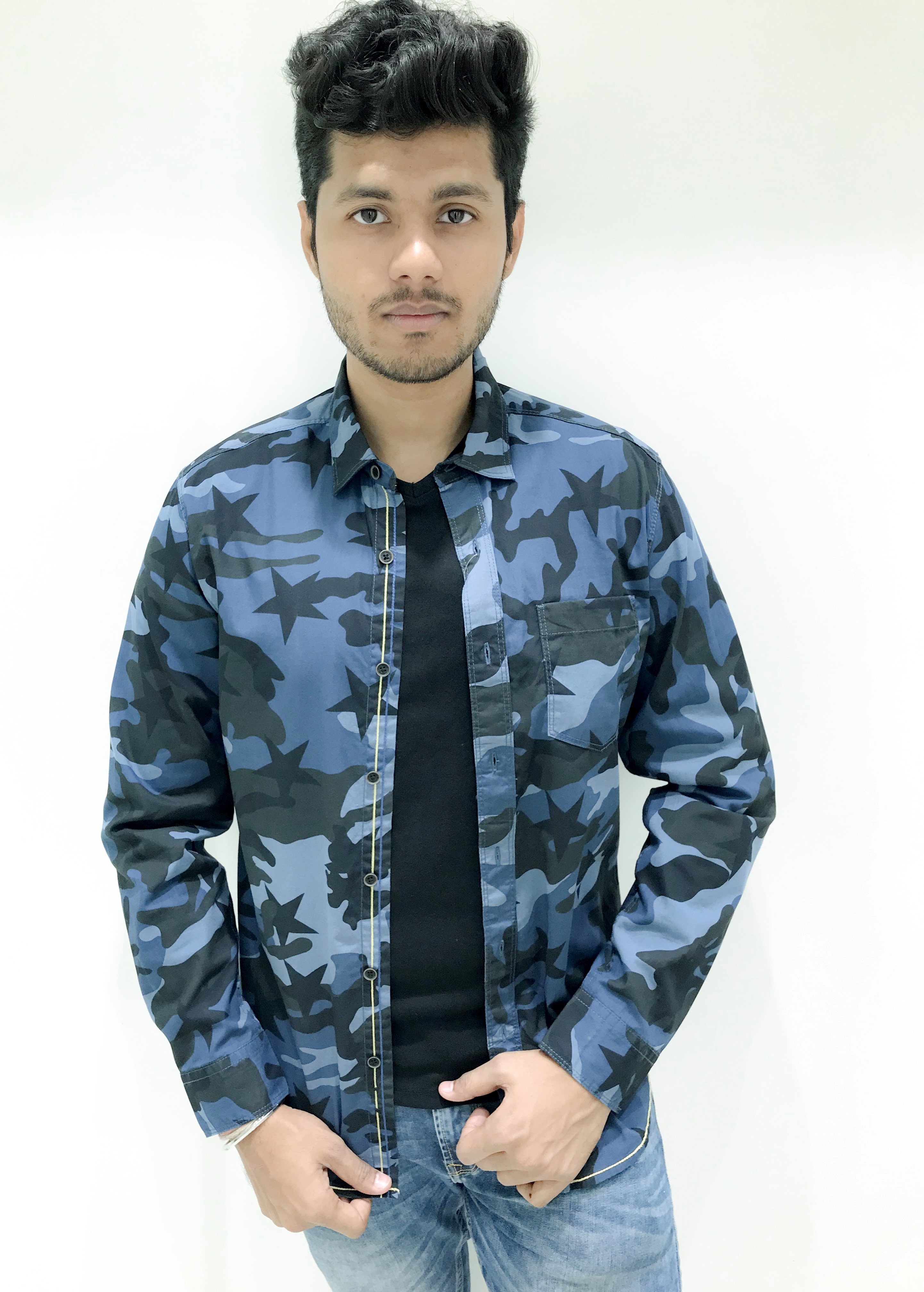 Camouflage design and colors available are Blue and Green. Its slim fit shirt with attractive design and it is machine wash shirt. Price of this Camouflaged shirt is Rs. 999.